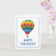 Colorful and unique birthday card featuring an illustration of a rainbow striped hot air balloon with "Happy Birthday" message below. Blank on the inside.