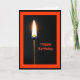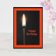 A single lit match, with the flame burning brightly against a black background, is the subject of my "Happy Birthday Hot Stuff" birthday card.