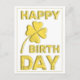 Happy Birthday in Gold with 4-leaf-clover! Postcard