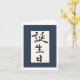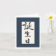 A gorgeous Japanese scroll with the kanji calligraphy for Birthday and the word Happy in front of it. On a "raw silk" texture in a deep shade of teal, this amazing design is the perfect custom birthday card. Add text, change layout and background.