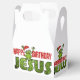 ►IMAGE: Frisky Frog celebrates the birthday of Jesus Christ. Cute stick figure with red Christmas hat sitting on a red and green “Happy Birthday Jesus”. This cartoon image sends a message of Christmas cheer. . . ►COLORS: Red, Green & Black Christmas colors ►TEXT: “Happy Birthday Jesus”.. . . ►Design appeals to men, women and children; All ages, Believers in Jesus Christ and the Christian Religion. Supporters of the Christmas Season being about Jesus Christ. (DESIGN by Paula Bragg)