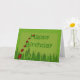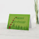 A row of lady bugs marching from the grassy lawn and across the front of this card. My drawing of bright ladybugs on a green background with Happy Birthday text. You can edit the inside verse if desired.