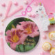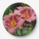 These birthday paper plates feature pretty pink day lilies. Look for matching products.