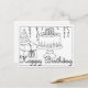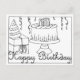 This beautiful black and white line drawing is ready to be colored in, for a unique DIY way to celebrate a birthday. This card features the phrase "Happy Birthday" and an image of presents, a cake and candles.