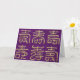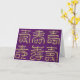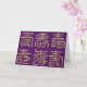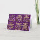This is a Happy Birthday card. These Chinese characters are actually the same character written in different calligraphic styles. It means "Long Life" and is usually used to wish someone a long life on their birthday. The background is a beautiful, rich, textured purple.