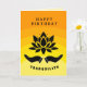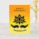 The lotus flower is a symbol of inner peace, rebirth and strength. A stylized lotus is used here in silhouette with cupped hands and the word TRANQUILITY to wish someone a Happy Birthday. The background has shades of yellow and orange to convey brightness and joy. All the text on the front and inside is editable. The default message inside, on a simple pale yellow background, is "INNER PEACE Close your eyes. Breathe in. Breathe out. Relax and repeat." Personalize this as required.