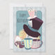 Cute and funny Mad Hatter tea party is good idea to celebrate a birthday. Turquoise, mint, plum and pink colors make this illustration special, and violet adds some madness.