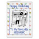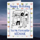 Mechanic is working on repairing a car. Car repairs. Automotive theme cartoon of a vehicle repair workshop. Personalize with your own details and message. Birthday card for a mechanic.