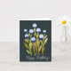 Happy Birthday minimal blue watercolor flowers Card. Simple round floral illustration birthday card.