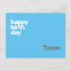 happy birthday minimal simple modern postcard custom name, blue, grey white.