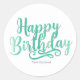 HAPPY BIRTHDAY Minty Green & White Custom Fun Classic Round Sticker