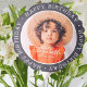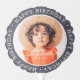 This simple and modern design is composed of serif typography and add a custom photo."Happy Birthday" encircles the custom photo.