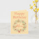 A lovely greeting card, this design has a lovely peach background with "Happy Birthday" written at the top in red standard font. Underneath is a peach and green wreath with "Mom" written inside in red cursive font. The inside has a photo that you can upload and a special message. Order yours today!