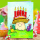 This birthday card design was painted using watercolors and is drawn in a cartoon style.