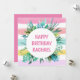 Happy Birthday Name Pastel Stripes Leaf Birthday Holiday Card