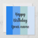 Cool blue stripes pattern with text: Happy Birthday and a name template. Fit a maritime style.