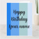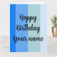 Cool blue stripes pattern with text: Happy Birthday and a name template. Fit a maritime style.