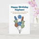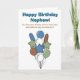 A birthday card for a nephew with blue, green and brown balloons and sentimental wishes for your nephew.