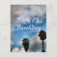 Happy Birthday palm trees and cloudy sky photograph. tropical nature postcard. Customize and Personalize the text on this product for any occasion. Postcards are perfect for mass mailings or whenever you need to mail a large number of announcement or party invitations. Discounts available when purchased in bulk.