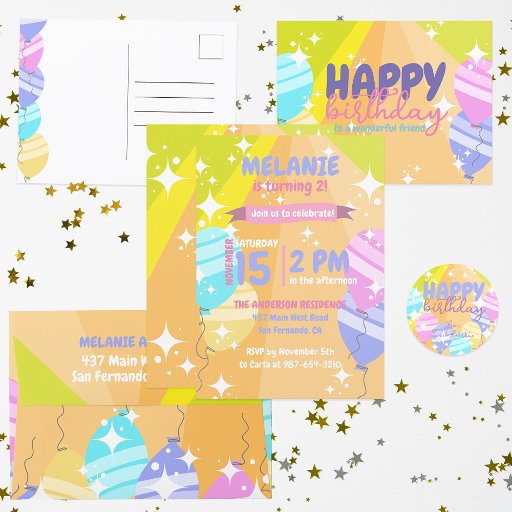 Colorful Cartoon Balloons and Sparkles BirthdayDesigned by Kristina Lj Petrovska