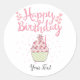 Happy Birthday Party Custom Pink Cupcake Classic Round Sticker