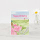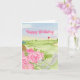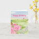 Tee off in style with this elegant watercolor Happy Birthday card. Featuring a hand-painted golf course and a golf bag overflowing with soft pink peonies and classic clubs, this design perfectly blends femininity and fairway fun.