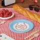 Painting of a baseball, with a placeholder for a name, and Happy Birthday, is printed on custom paper plates.