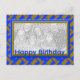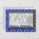 Add your photo to this blue and yellow Happy Birthday photo frame postcard