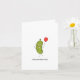 Card features a cute green pickle looking very happy holding a red balloon.