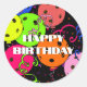 Happy Birthday Pickleball Balloons Confetti Black Classic Round Sticker