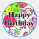 Happy Birthday Pickleball Balloons Confetti White Classic Round Sticker