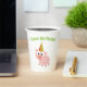 Cute cartoon Happy Birthday! pig wearing a party hat design.