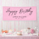 Create your own custom birthday banner featuring modern script calligraphy happy birthday and minimal typography name and date design for personalized birthday decor.
