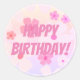 Happy Birthday Pink Flower Power Classic Round Sticker