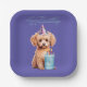 Happy Birthday Poodle with Party Hat & Bday Cake Paper Plates