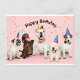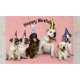 A group of animated dogs wearing party hats, celebrating a birthday. The dogs are joyful and happy and playful having a happy party,