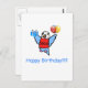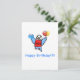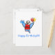 Buddie the Budgie with a birthday present and balloons. Who's Buddie?
