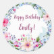 Happy Birthday Pretty PInk, Purple and Blue Floral Classic Round Sticker