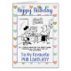 Pub Landlady Cartoon. Holiday drinking activities theme. Personalize with your choice of wording and inside message.