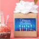 A vibrant birthday sticker featuring colorful candles with flickering flames.