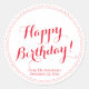 Happy Birthday red custom script name favors Classic Round Stickers.