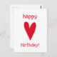 NewParkLane - Cute, romantic birthday postcard, with a big red heart, and 'Happy Birthday!' quote in fun script typography.