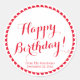 Happy Birthday red custom script name favors Classic Round Stickers.
