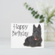 This charming Happy Birthday greeting postcard features a black Scottish Terrier dog highlighted against a crisp white background.
