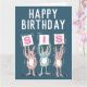 Birthday card for a Sister. Fun Birthday Card with illustration of Rabbits in pink and blue. The rabbits are holding up cards to spell out the word SIS.
