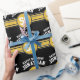 Happy Birthday Sports Stripes with Age Gold Black Wrapping Paper