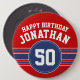 Happy Birthday Sports Stripes with Age - Red Blue Button