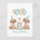 Cute cartoon illustration of Standard Poodle dogs wearing a birthday hat surrounding a birthday cake and balloons. Perfect for pet lovers or dog parents.