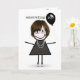 Cute stick figure girl with hair, sneakers, glasses, polka dot dress, pearl necklace, and black balloon for any age birthday.