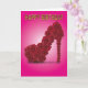 Original greeting card with a beautiful stiletto shoe full of red roses with the birthday greeting in gold tones and rhinestones.